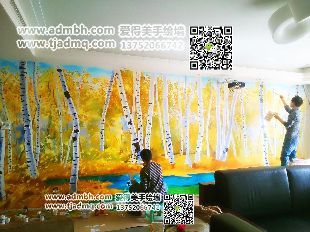 繪畫地點:白樺林沙發(fā)背景墻(海逸長洲)