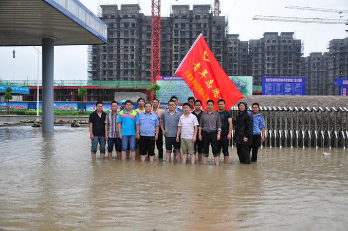 退役軍人志愿者參加廠區(qū)防汛排水