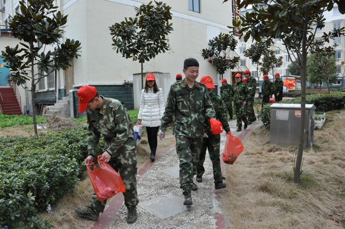 退役軍人志愿者參加社區(qū)垃圾清掃服務(wù)