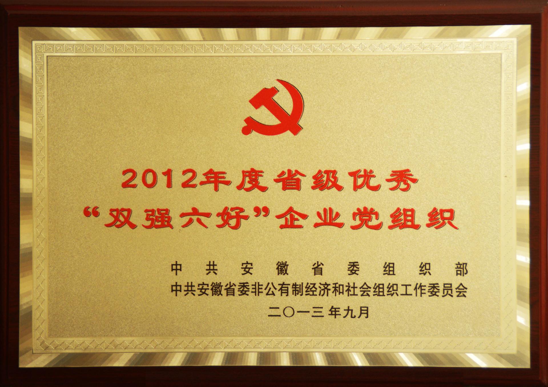2013年9月,被安徽省委組織部、省委非公有制經濟和社會組織工作委員會評為“2012年度省級“雙強六好”企業黨組織”