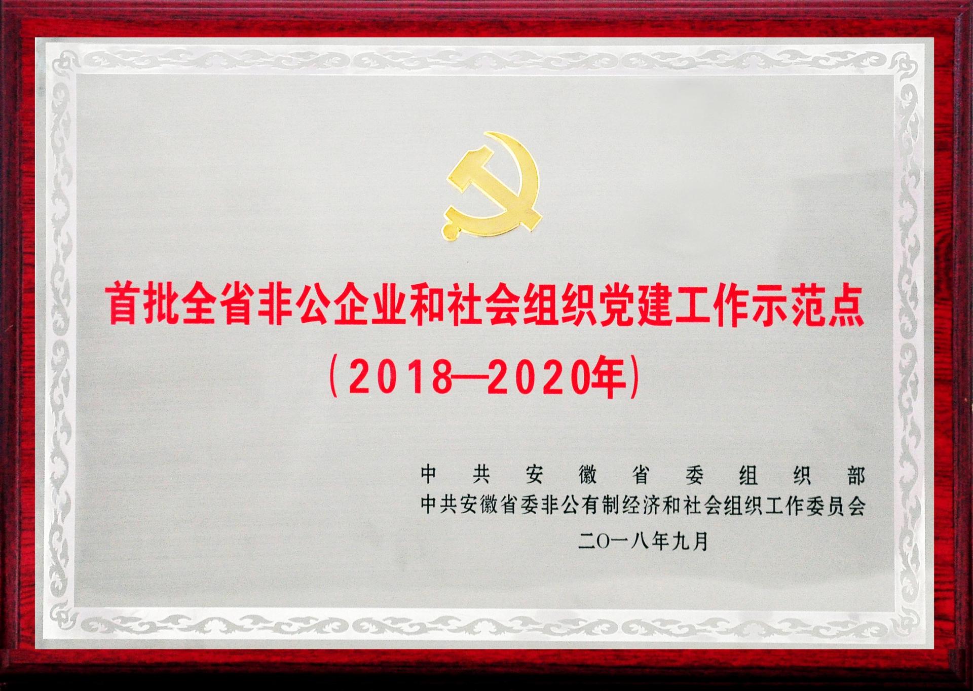 2018年9月,被安徽省委組織部、省委非公有制經濟和社會組織工作委員會評為“首批全省非公企業和社會組織黨建工作示范點(2018-2020年)”
