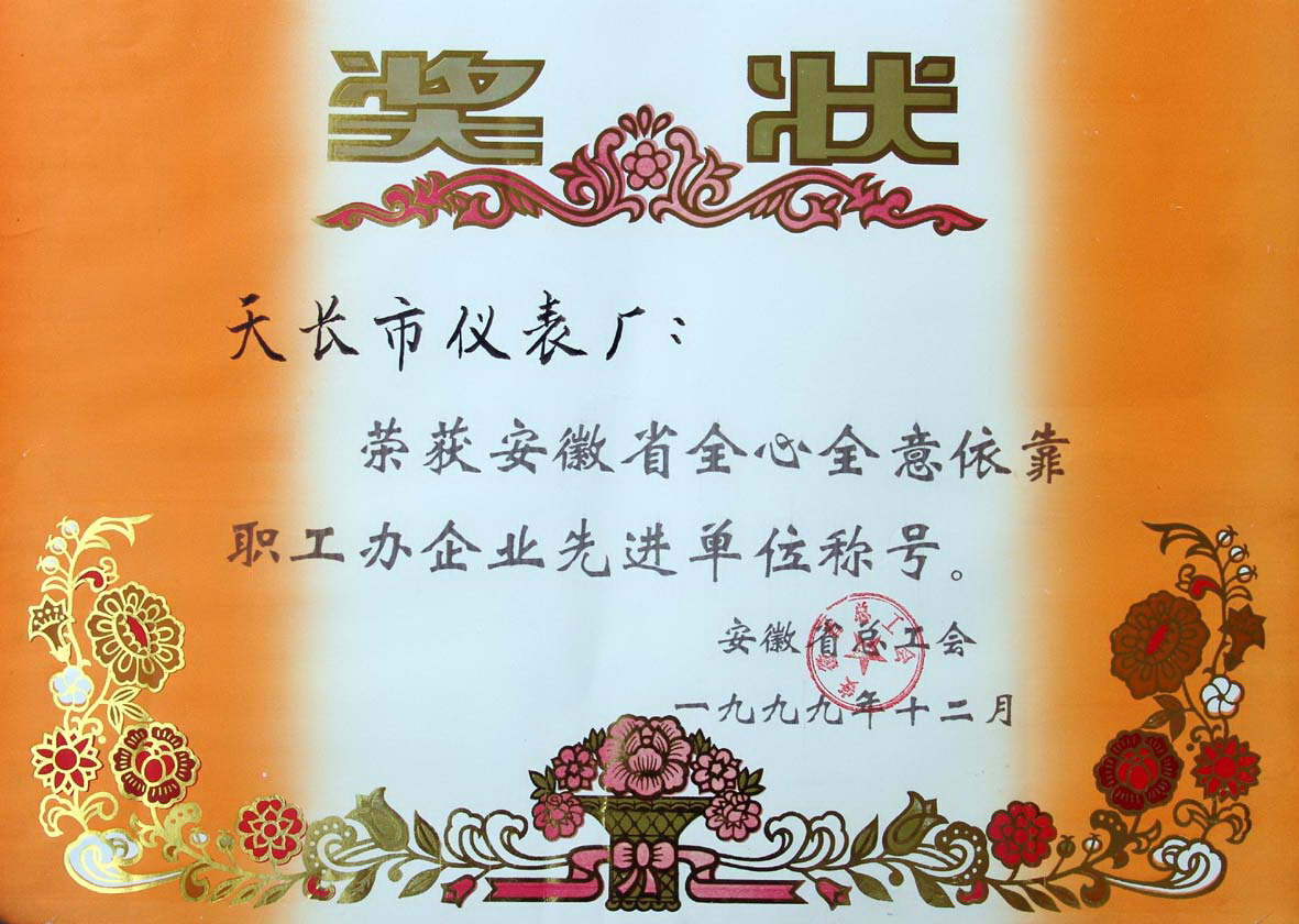 1992年12月,獲得安徽省“全心全意,依靠員工辦企業先進企業”十佳單位榮譽稱號
