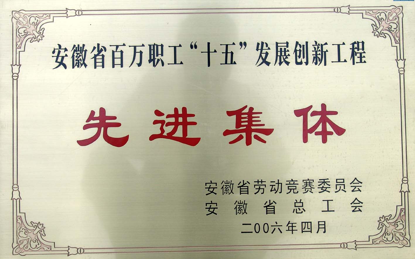 2006年4月,被省總工會評為“安徽省百萬員工‘十五’發展創新工程”先進集體