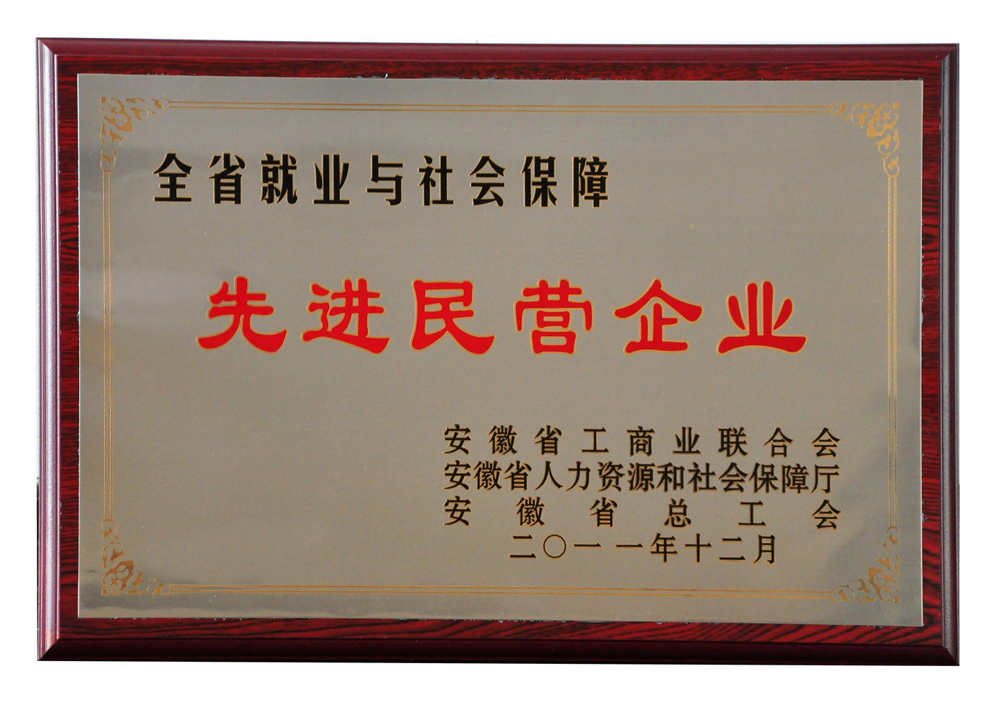 2011年12月,被評為全省就業與社會保障先進民營企業