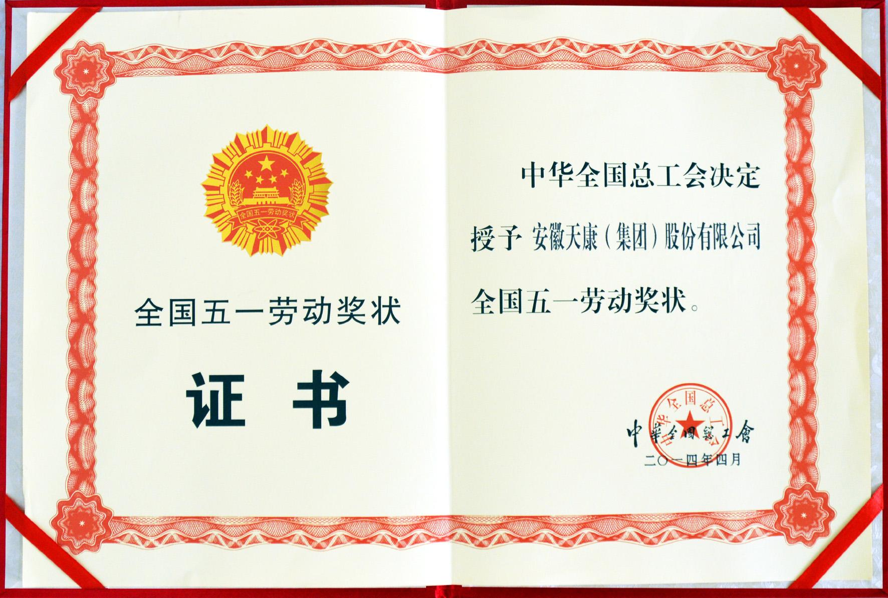 2014年4月,被中華全國總工會授予“全國五一勞動獎狀”