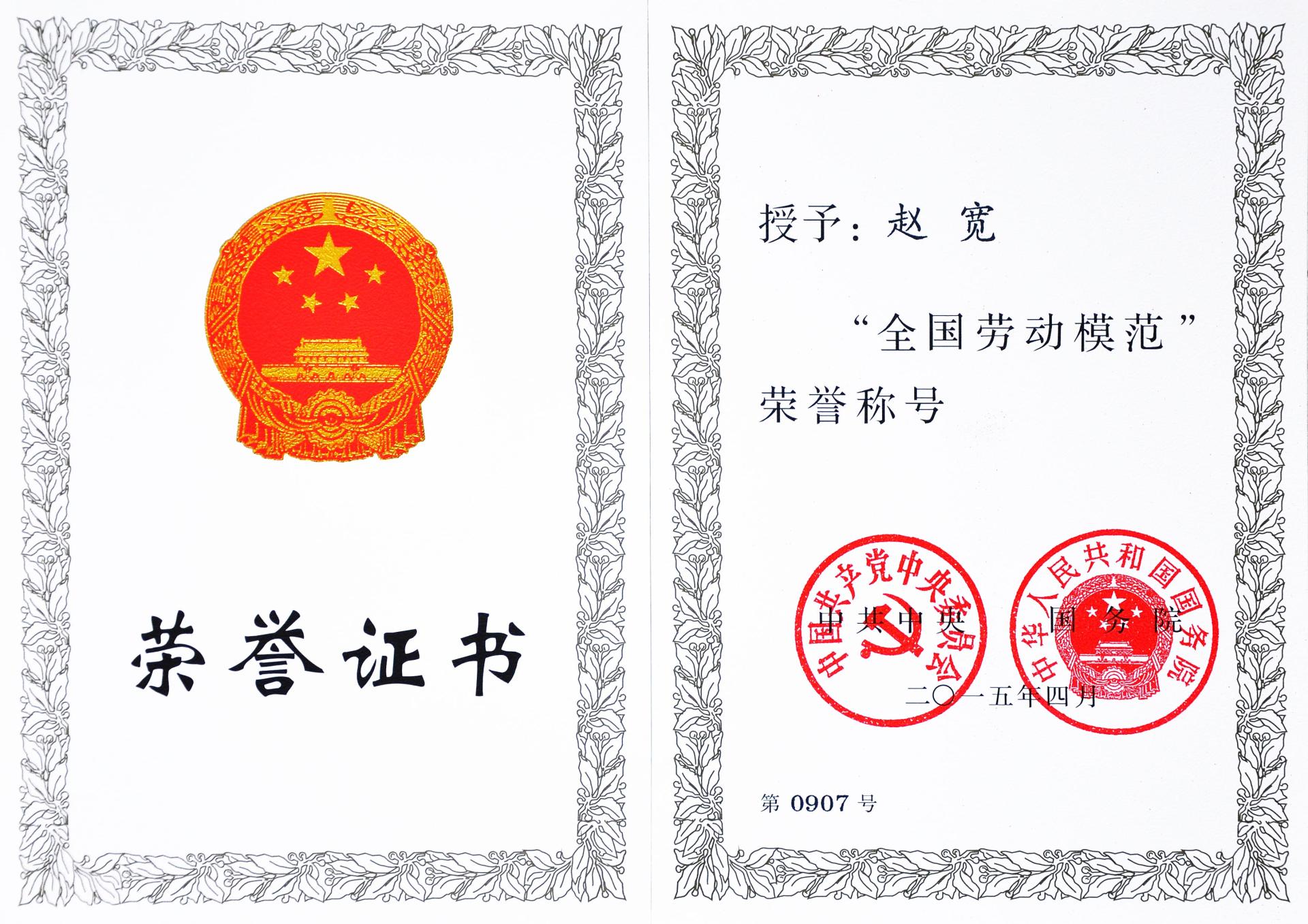 2015年4月,集團黨委書記、董事長趙寬被中共中央、國務院授予“全國勞動模范”榮譽稱號