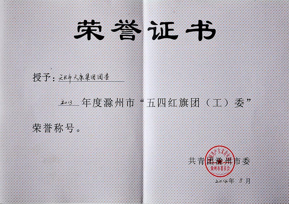 天康集團(tuán)團(tuán)委榮獲2013年度滁州市五四紅旗團(tuán)委稱號(hào)