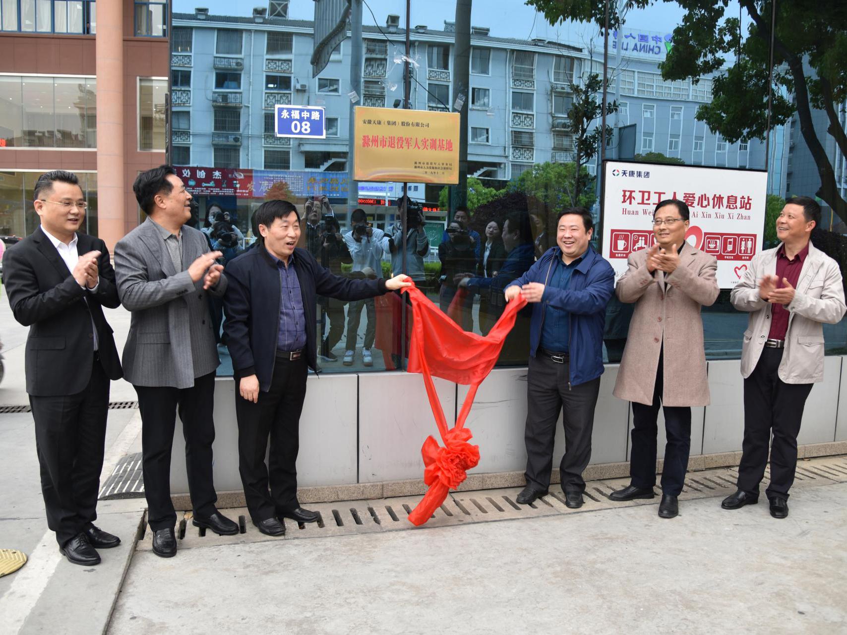 滁州市退役軍人事務局局長楊軍、天長市委副書記、市長賀家平共同為“滁州市退役軍人實訓基地”、“退役軍人管理服務站”揭牌