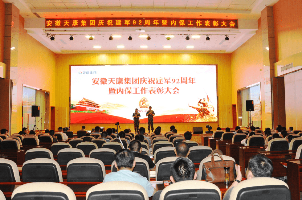 2019年8月1日下午4點(diǎn),安徽天康集團(tuán)在集團(tuán)一樓會(huì)議中心舉行慶祝建軍92周年文藝演出暨2018年度內(nèi)保工作表彰大會(huì),退役軍人、辦公人員共100多人參加會(huì)議。