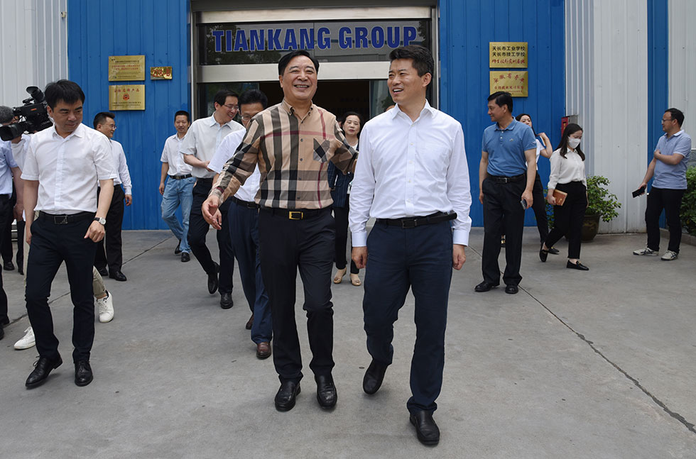 5月29日上午,安徽省政府副省長張紅文蒞臨安徽天康集團調研企業發展及生產經營情況。省市場監督管理局局長韓永生,省發展改革委副主任徐成然,滁州市副市長陸峰,滁州市市場監督管理局局長李如培,滁州市發展改革委副主任范德勝,天長市委書記鄧繼敢陪同調研。