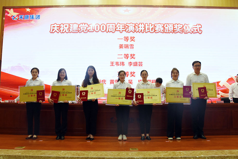 為慶祝建黨100周年,謳歌中華民族實現偉大復興的百年奮斗歷程,頌揚中國共產黨的豐功偉績,6月23日下午,安徽天康集團黨委在一樓會議中心隆重舉行慶祝建黨100周年“知黨情、頌黨恩、守初心”主題演講比賽決賽。集團黨委副書記、總經理毛文章;集團黨委委員、紀委書記、工會主席、天康醫院黨支部書記、黨委辦主任于正江;集團人力資源部、文宣部部長徐宏勤;集團直屬黨支部書記、集團辦公室副主任馬林;集團文宣部副部長竇青海擔任本次決賽的評委。