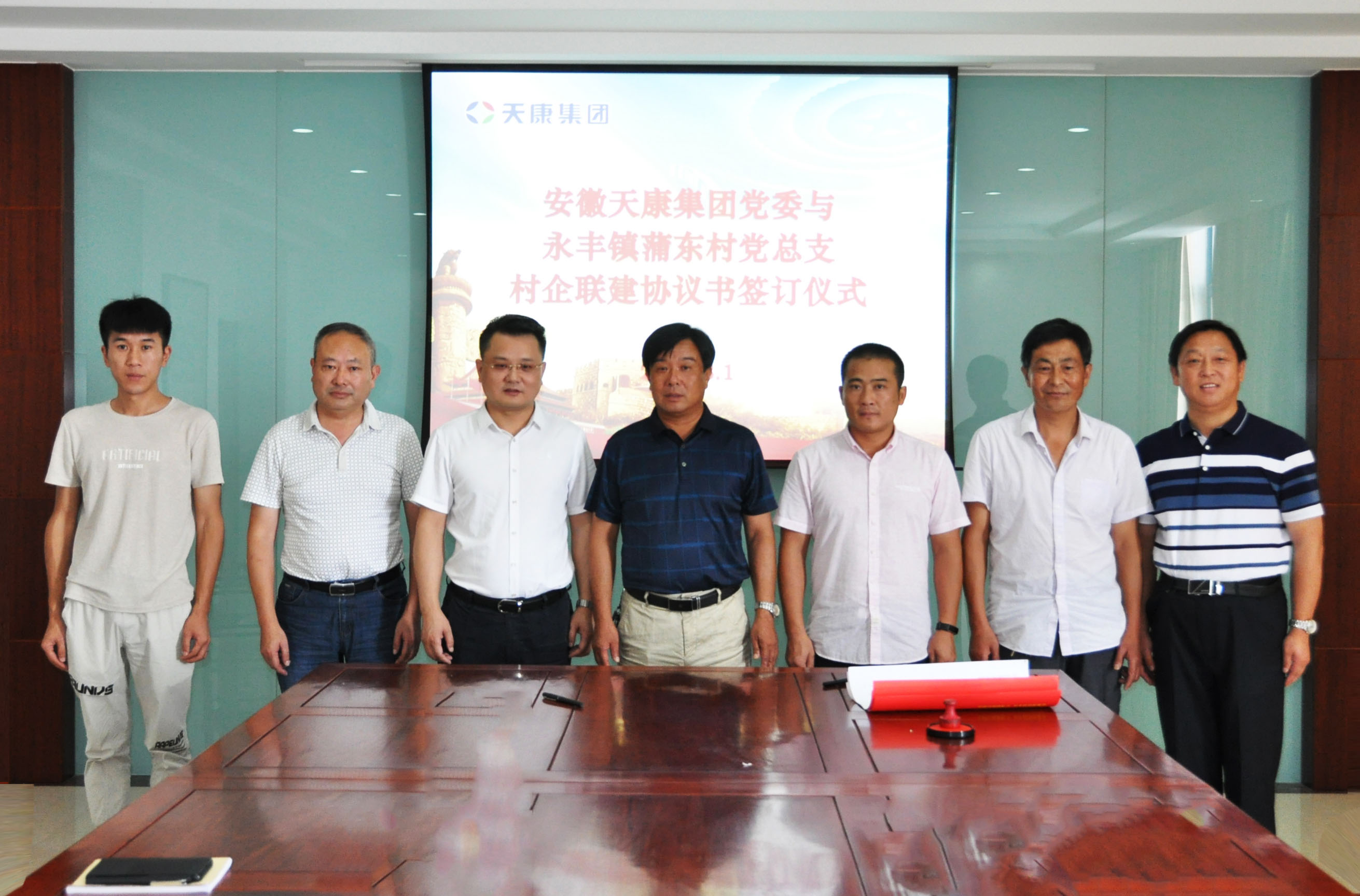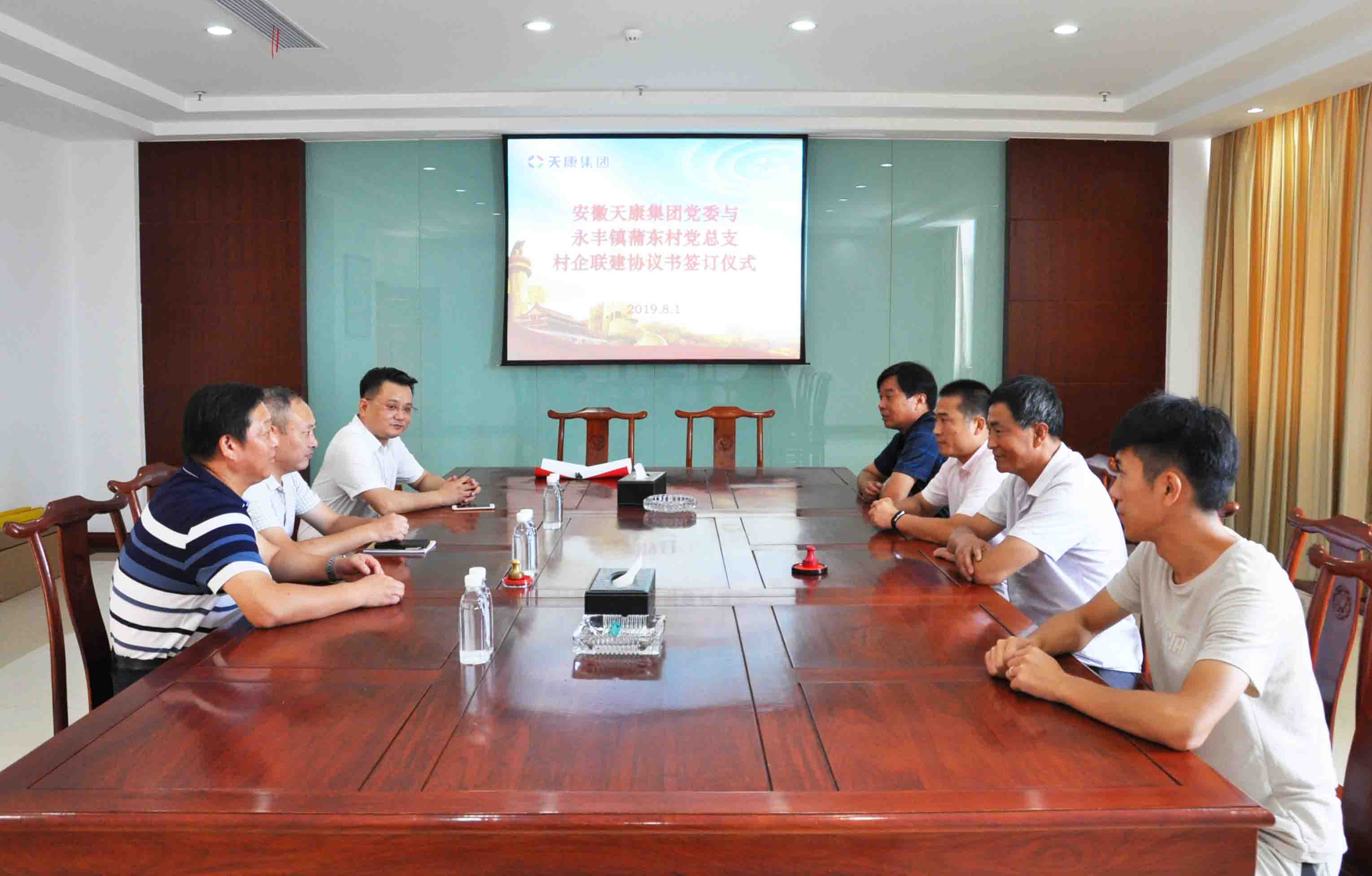 8月1日上午,安徽天康集團(tuán)黨委與永豐鎮(zhèn)蒲東村黨總支“村企聯(lián)建”協(xié)議書(shū)簽訂儀式在集團(tuán)1001會(huì)議室舉行。集團(tuán)黨委副書(shū)記、總經(jīng)理毛文章,黨委委員、副總經(jīng)理張祖國(guó),紀(jì)委書(shū)記、黨委委員于正江和永豐鎮(zhèn)蒲東村黨總支書(shū)記吳仙山、副書(shū)記李宏明等相關(guān)負(fù)責(zé)同志參加會(huì)議。
