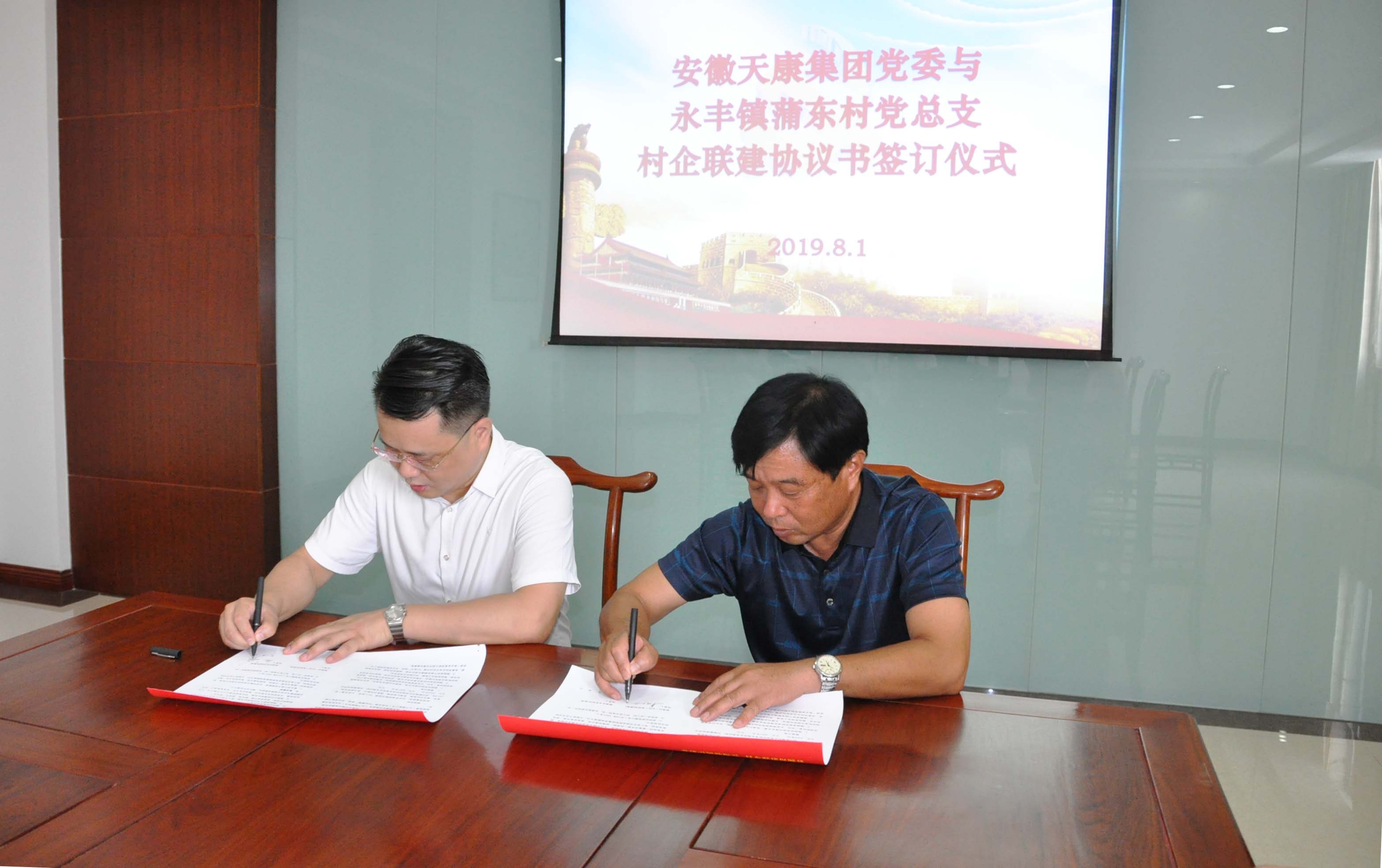 集團(tuán)黨委副書(shū)記、總經(jīng)理毛文章與永豐鎮(zhèn)蒲東村黨總支書(shū)記吳仙山簽訂了“村企聯(lián)建”協(xié)議書(shū)。簽訂儀式在熱情和諧的氣氛中圓滿結(jié)束.