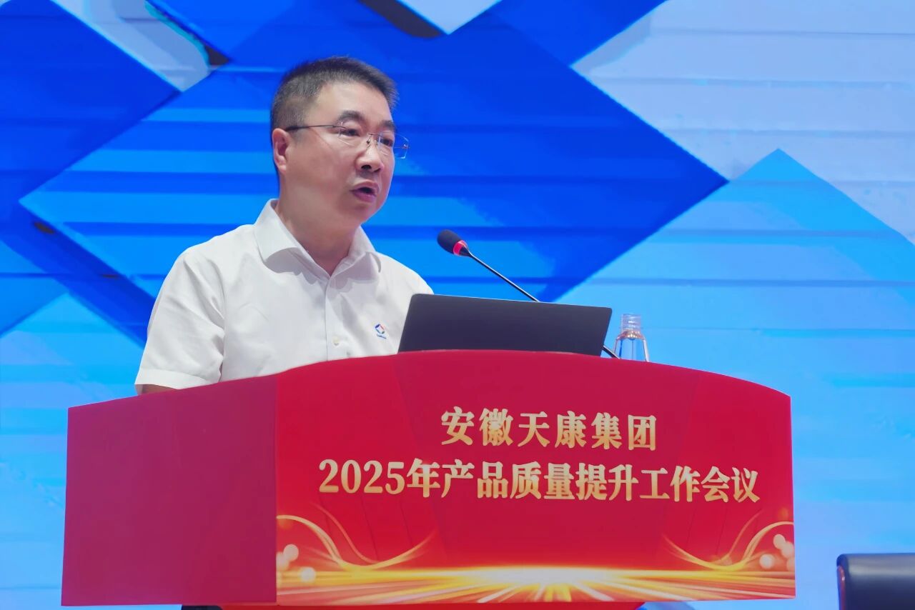 9月29日下午,安徽天康集團在大樓會議中心隆重召開2025年產品質量提升工作會議,就全國“質量月”期間所布置的工作進行點評和總結。集團黨委副書記、總經理毛文章出席會議并作重要講話,集團副總經理張祖國、王舉、徐成業、趙可華,紀委書記馬林等領導出席會議。集團相關部門負責人、副部級以上管理人員、班組長以上管理人員等參加了會議,會議由集團紀委書記馬林主持。