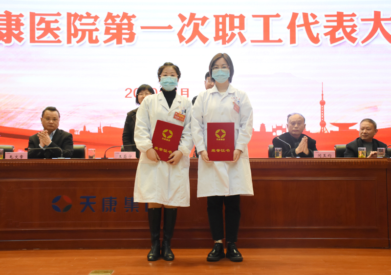 根據大會議程安排,天長市總工會黨組書記陳世田宣讀了《關于同意天長天康醫院工會召開第一次職工代表大會的批復》。大會選舉產生了天康醫院第一屆工會委員會、工會經審委員會和女職工委員會,劉加芳同志當選為工會主席,秦文桃同志當選為工會副主席兼女工委主任,王恩權當選為經審委員會主任。
