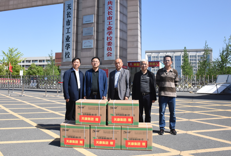 為了彰顯集團的企業擔當,以實際行動助力學校防疫工作。近日,安徽天康集團工會主席閔玉均、副主席于正江等代表集團再次向全市初、高中等8所學校捐贈了一次性醫用口罩。