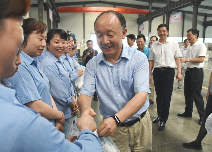 8月8日,省總工會(huì)黨組書記、副主席徐發(fā)成,省總工會(huì)副主席張文靜一行在滁州市政協(xié)常務(wù)副主席、總工會(huì)主席高懷忠,滁州市總工會(huì)黨組書記錢家廣及天長市委書記鄧?yán)^敢,市委常委、副市長張傳道,市人大常委會(huì)副主任、總工會(huì)主席周建平,天長市總工會(huì)黨組書記陳世田等相關(guān)領(lǐng)導(dǎo)的陪同下蒞臨安徽天康集團(tuán)開展送清涼和調(diào)研活動(dòng),安徽天康集團(tuán)董事長趙寬、總經(jīng)理毛文章熱情接待了徐發(fā)成一行。
