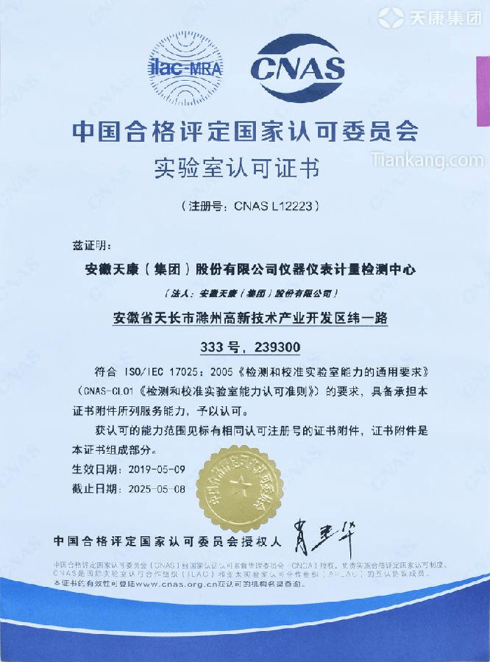 近日,經(jīng)過(guò)緊張而復(fù)雜的審核程序,安徽天康(集團(tuán))股份有限公司儀器儀表計(jì)量檢測(cè)中心順利通過(guò)中國(guó)合格評(píng)定國(guó)家認(rèn)可委員會(huì)的文審和現(xiàn)場(chǎng)審核,并獲得認(rèn)證證書(shū)(證書(shū)編號(hào):L12223)。