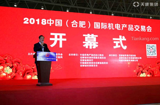 10月26-28日,由中國機電產品交易網、安徽省機電行業協會主辦的2018中國(合肥)國際機電產品交易會在合肥濱湖國際會展中心舉行,安徽天康集團應邀參加展會。安徽省機電行業協會會長、安徽天康集團董事長趙寬出席開幕式并致辭。