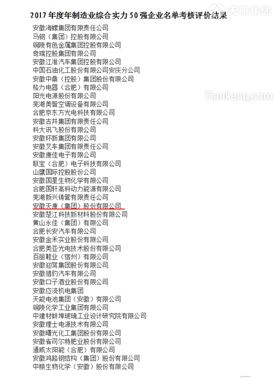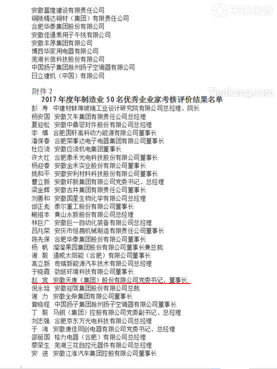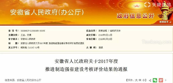 5月25日,2018世界制造業大會和2018中國國際徽商大會將在合肥拉開帷幕。安徽省人民政府于5月23日對外發布了2017年度推進制造強省建設考核評價結果,安徽天康集團上榜2017年度安徽省制造業綜合實力50強企業名單;集團董事長趙寬被授予2017年度制造業優秀企業家榮譽稱號。
