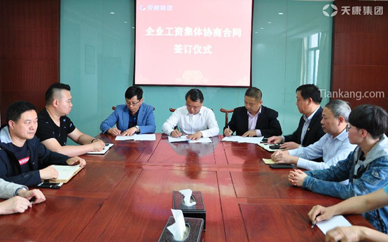 4月30日,安徽天康集團總經理毛文章與集團工會會員代表簽訂了2018年度《企業工資集體協商合同》。