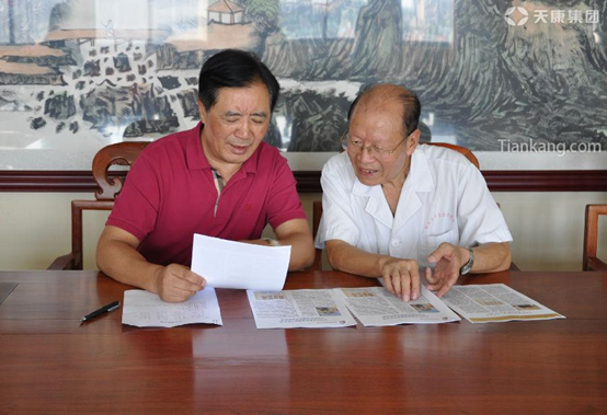 集團(tuán)董事長(zhǎng)趙寬與高國(guó)俊教授一起探討新藥配方