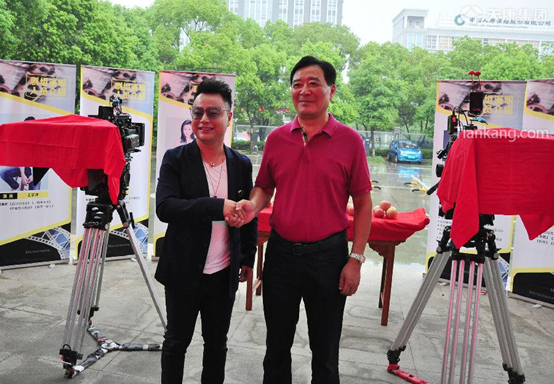 董事長趙寬與北京任性影視傳媒有限公司董事長戴戴及男一號劉濟愷、女一號邵星穎一同揭布開機。