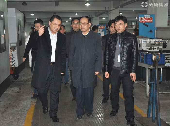 集團(tuán)總經(jīng)理毛文章陪同陳叔弘一行深入生產(chǎn)一線了解相關(guān)情況,圖為陳叔弘一行在儀表制造部考察。
