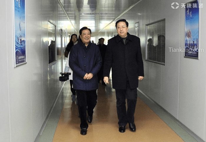 2月9日上午,滁州市副市長楊東坡(右)蒞臨天康調研工作,天康集團董事長趙寬(左)陪同調研。