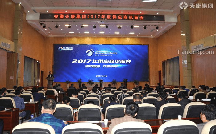 4月15日上午,集團在會議中心召開2017年度供應商見面會。圖為會議現場。