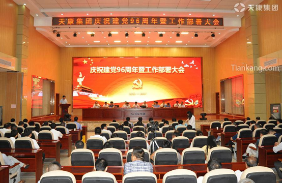 7月1日上午,集團在一樓會議中心隆重舉行了慶祝建黨96周年暨工作部署大會。圖為會場全景