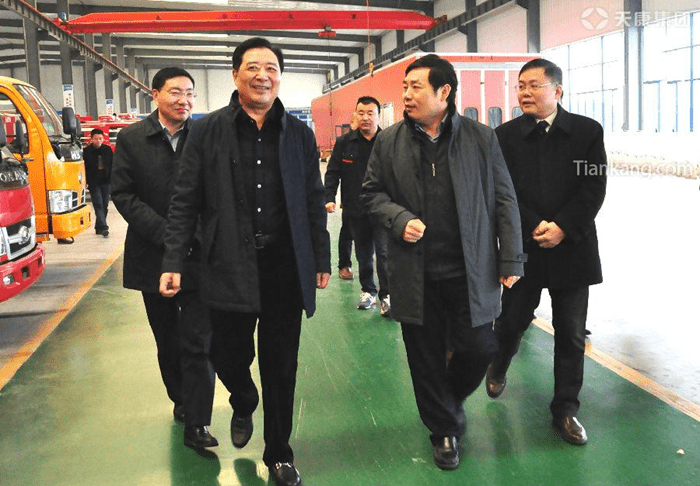 2月8日上午,滁州市委副書記許繼偉(右二)在天長市委書記金維加(右一)的陪同下蒞臨天康集團調研工作,天康集團董事長趙寬向許繼偉副書記介紹天康集團發展概況。