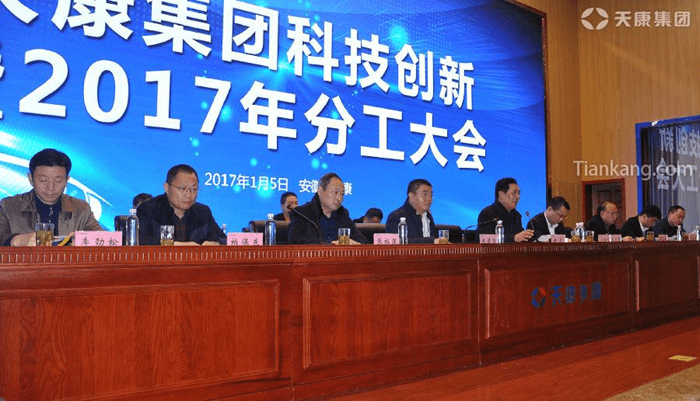 1月5日上午,集團在一樓會議中心隆重召開科技創新暨2017年工作分工大會,圖為大會會場。