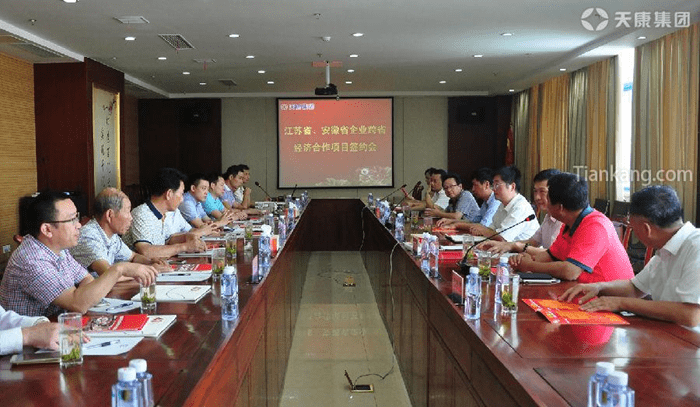 9月1日上午,蘇皖兩省企業跨省經濟合作項目簽約儀式在天康集團隆重舉行。圖為簽約儀式現場