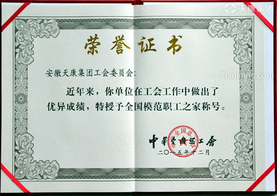榮譽的取得是黨和政府、社會群體、集團員工對天康集團多年來著力于企業與員工共同發展、構建和諧企業的充分肯定。“全國模范職工之家”榮譽稱號由中華全國總工會設立,是全國工會系統表彰先進集體的最高榮譽,也是國家對基層工會工作的最高褒獎。