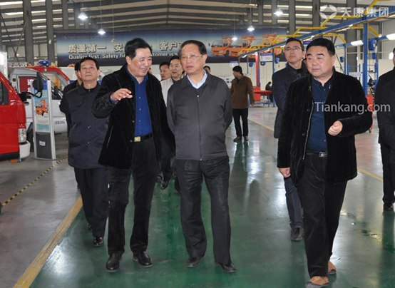 3月13日,省政協(xié)秘書長王啟敏(左三)蒞臨天康調(diào)研工作,集團董事長趙寬(左二)在特種車輛