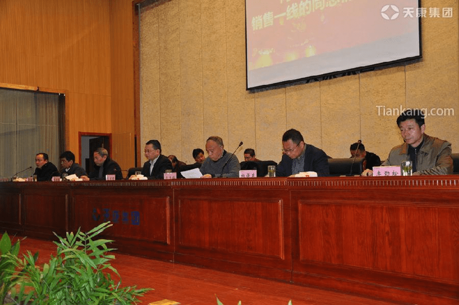 在大會(huì)主席臺(tái)就坐的集團(tuán)領(lǐng)導(dǎo)與銷售副總