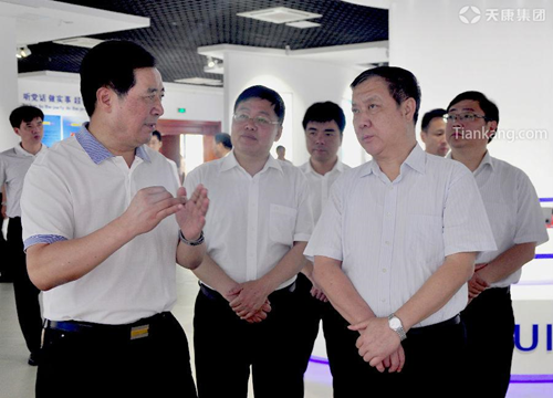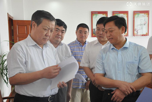 王賓宜書記(右一)在天康集團(tuán)展示中心觀摩了解天康集團(tuán)的發(fā)展史