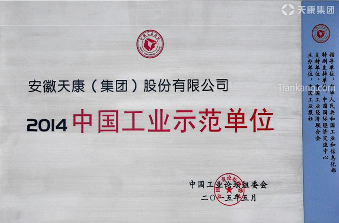 6月26日,由國家工業和信息化部為指導單位、中國國際經濟交流中心為特別支持單位、中國工業經濟聯合會為支持單位、中國工業報社共同主辦的第十一屆中國工業論壇在北京隆重舉行。安徽天康(集團)股份有限公司榮獲“2014中國工業示范單位”,集團黨委書記、董事長趙寬榮獲“2014中國工業十大杰出人物”榮譽稱號。