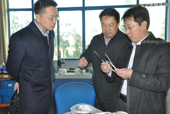 12月16日,中國電池網董事長于清教(右一)考察天康儀表產品