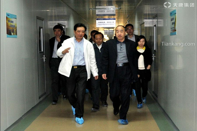 省國土資源廳廳長孫愛民(左二)考察天康新能源量產線