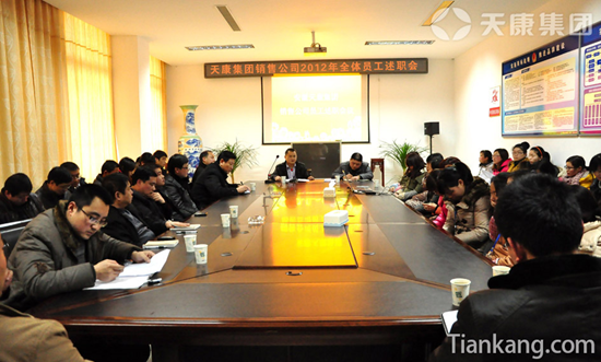 2月14日下午,集團銷售公司在一樓會議室召開了2012年員工述職大會。會議主要通過各員工對自身的工作職責、工作目標進行闡述,進一步明確和強調了2012年員工工作風及精神風貌等問題,會議由常務副經理姜鵬主持,集團常務副總毛文章出席了本次會議。 會上,首先由銷售公司對全體辦公人員的工作風貌作具體要求。首先,要加強工作紀律,嚴格考勤制度管理,不得遲到早退。嚴禁在工作時間玩游戲,看電影等與工作無關的行為;其次,創新管理方式和工作方法。所有崗位實行職責、級別的細致劃分,崗位擬設主崗、副崗,相互協作,相互監督。崗位貢獻的大小直接決定工資上的差距;第三,規范工作行為,能主動為銷售經理服務,態度要真誠熱情,當面交流以及電話用語要禮貌文明。第四,創建干凈整潔的辦公場所。為營造良好的工作環境,針對部分辦公人員的調整情況,對銷售公司的衛生責任區域劃分及值班人員的安排也作了相應的調整以保證辦公場所秩序井然、干凈整潔。 毛總就新的一年銷售公司的工作提出了具體指示,要求銷售公司全體員工牢記“兩不” :不以人手少為犯錯誤的借口,不以事情多為出差錯的理由。工作時個人務必細致、謹慎、有條不紊,相互之間能夠團結、配合,不推諉、不扯皮,保證工作效率的整體提高。做到“四嚴” :嚴守工作紀律;嚴謹工作制度;嚴密辦事程序;嚴格要求自己。無規矩不成方圓,工作中的規矩體現在一個“嚴”字上, “嚴”與“不嚴”直接關系到工作質量的“高”與“低”。工作過程中務必做到有計劃、有措施、有落實、有檢查; 強化“五識” :強化服務意識;強化全局意識;強化責任意識;強化工作質量意識;強化崗位危機意識,新的一年全體員工都應時刻具有以上“五識”,以“五識”規范自身行為,任勞任怨,全心全意做好本職工作和領導安排的任務; 此次會議的召開,規范了銷售公司的工作制度,端正了員工的工作態度,進一步明確了全體員工要以飽滿的工作熱情、積極的工作態度,精益求精的工作精神來做好本職工作,為天康的發展做出自己應有和貢獻。