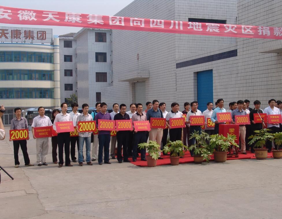 “天災無情人有情?!钡卣鸢l生后,安徽天康集團迅速行動起來,積極響應上級號召,專門召開會議,并下發了文件,在集團范圍內深入開展為災區捐贈活動,支援地震災區做好抗震救災工作。