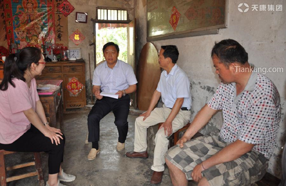 集團黨委辦主任于正江(中)了解特困家庭生活、生產情況