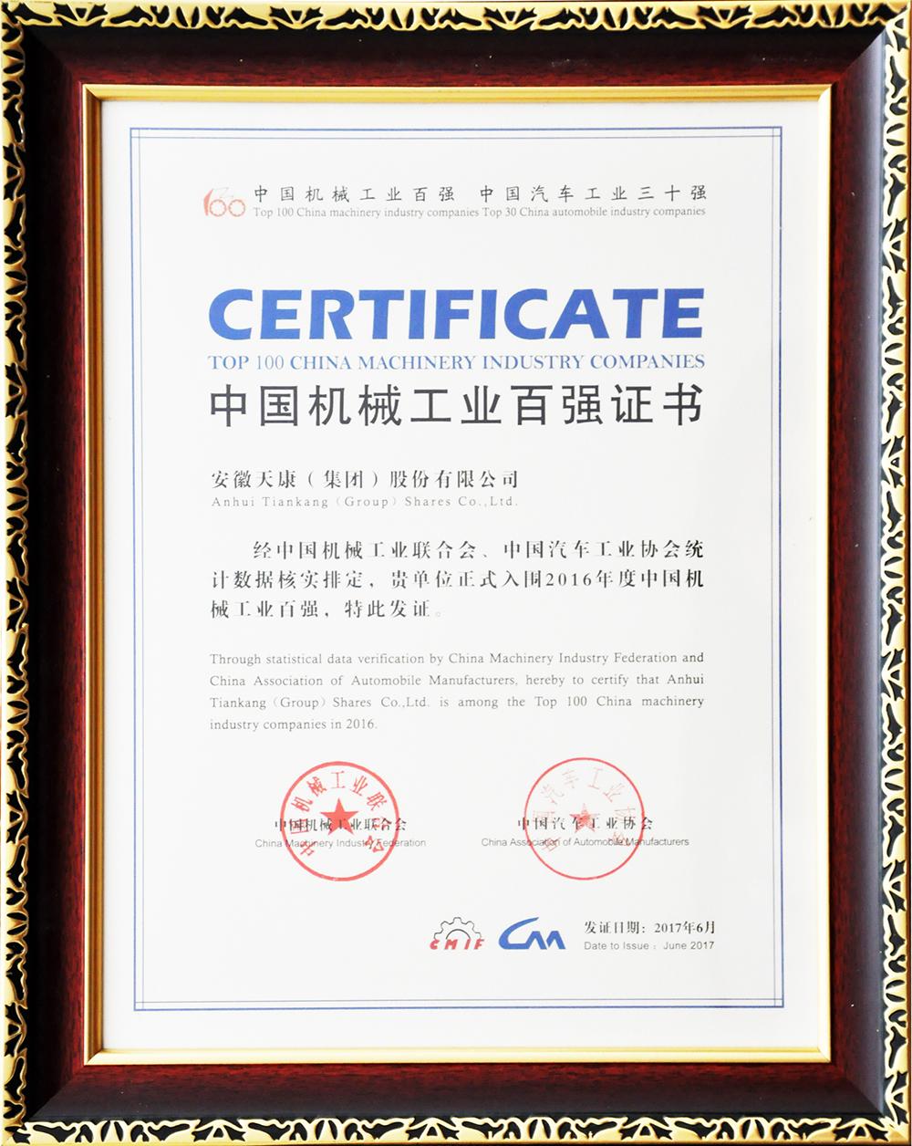 2016年度中國機械工業(yè)百強